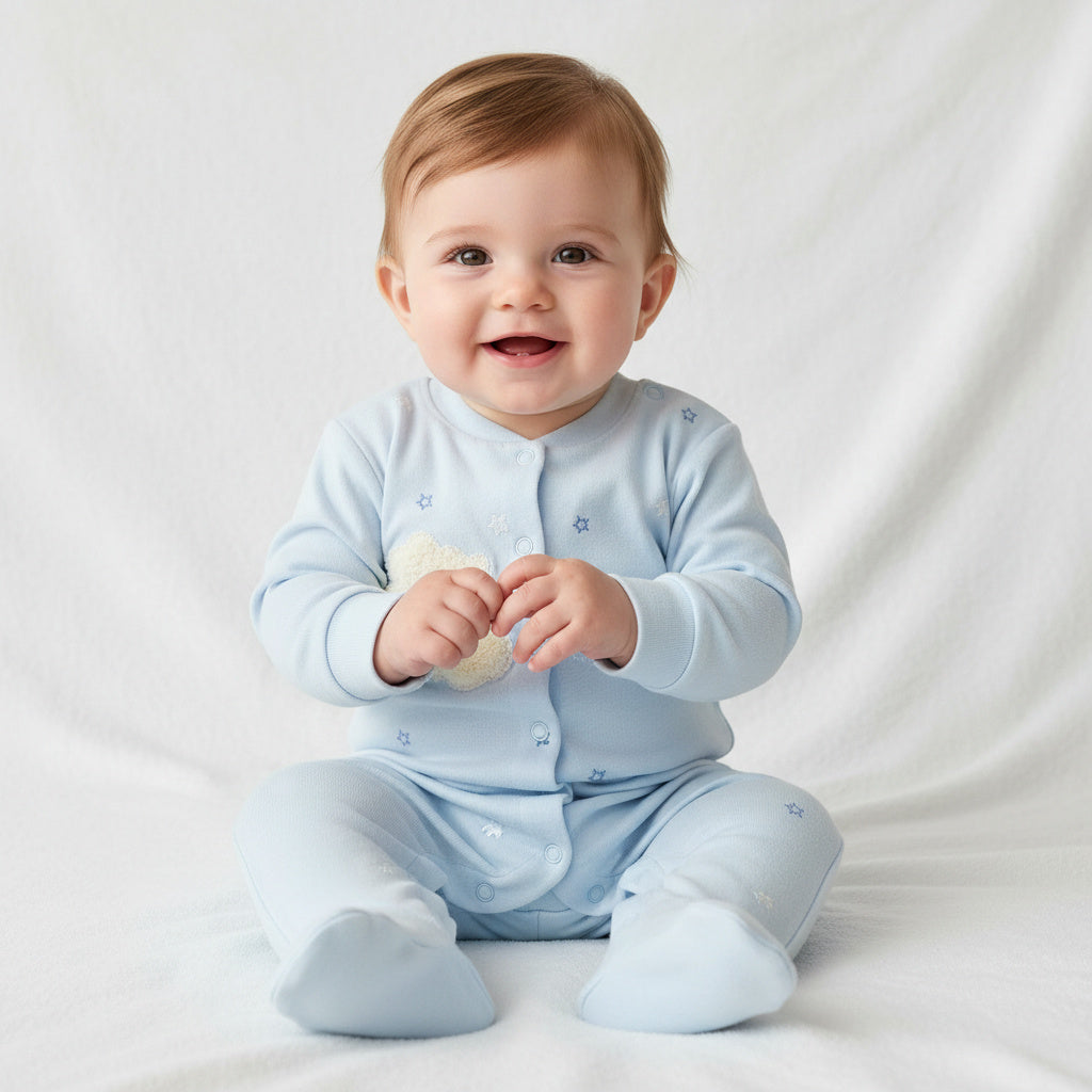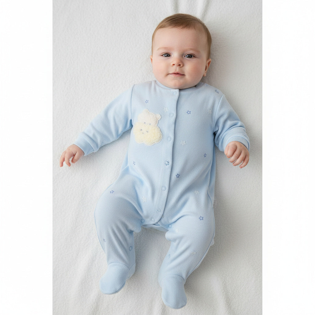 Нежен като сън и мек като прегръдка – гащеризонът „Blue Dream“ е създаден за спокойни нощи и уютни бебешки дни. Светлосиният цвят и фината апликация с облаче създават усещане за лекота и спокойствие.