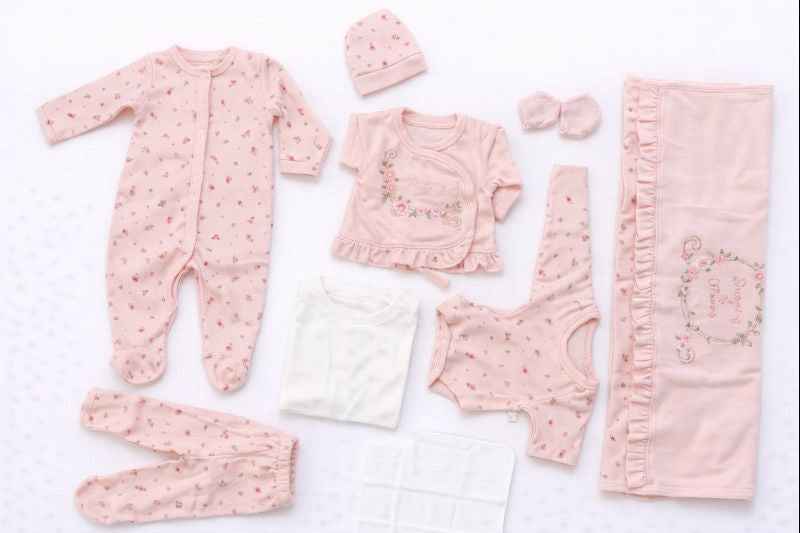 Бебешки комплект за изписване „Sweet Blossom“ – 10 части, розово и екрю