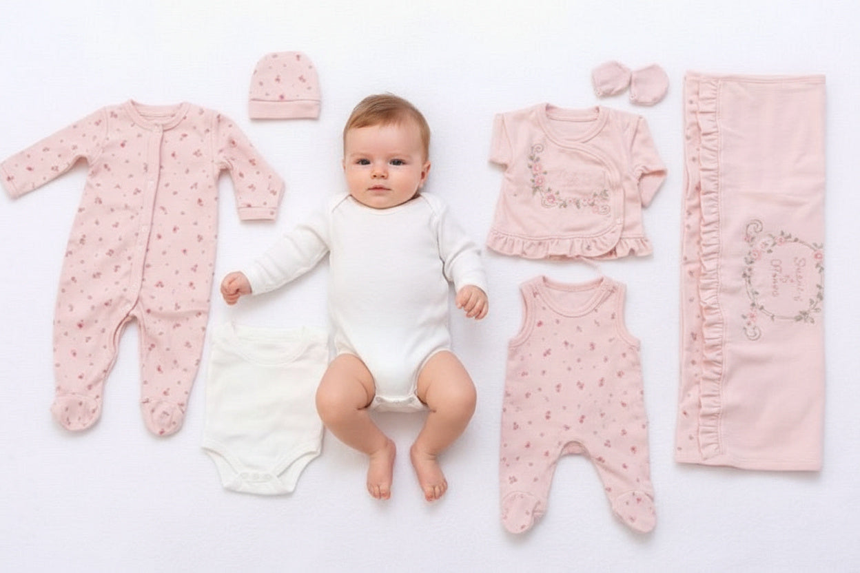 Изключително нежен и романтичен комплект за изписване, създаден за първите специални мигове на вашето бебе. „Sweet Blossom“ впечатлява с фин флорален дизайн, пастелни нюанси и внимание към всеки детайл.