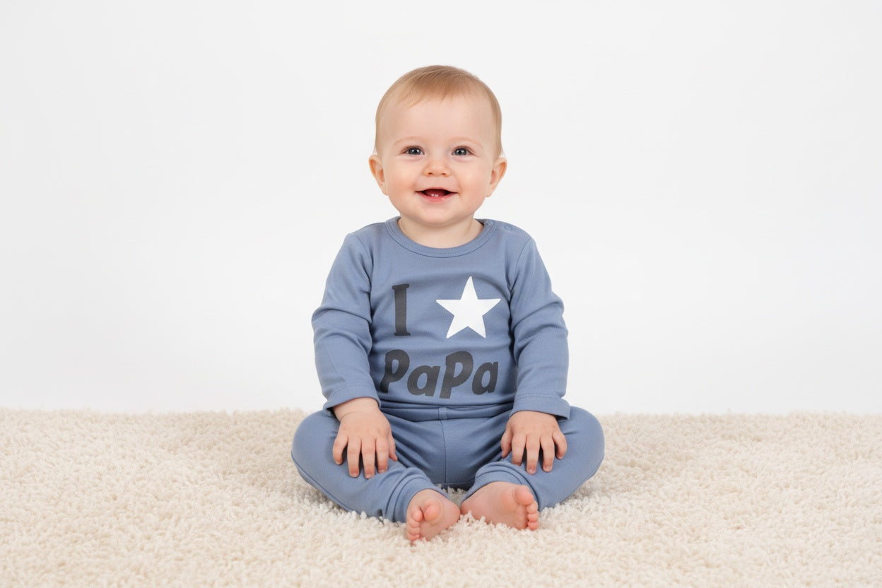 ✨ С комплекта „I ❤️ Papa“ от Zvezdichka, Вашето мъниче ще бъде едновременно сладко и удобно облечено, готово да зарадва тати с усмивка.