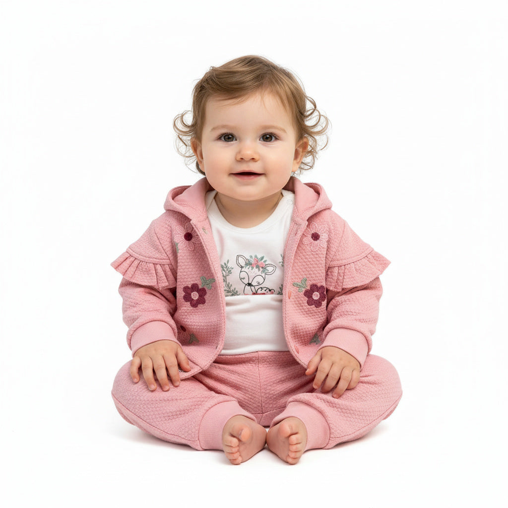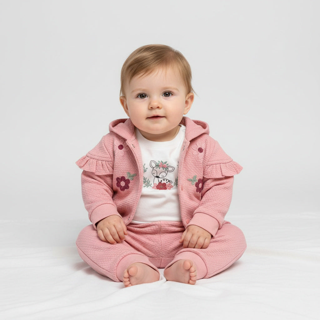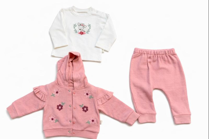 Бебешки комплект “Pink Garden” – 3 части, екрю и пудра розово