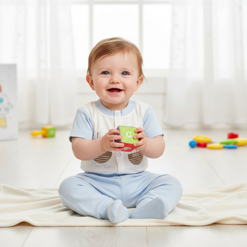Очарователен и удобен комплект, вдъхновен от морски приключения. „Little Sailors“ съчетава мекота, свобода на движение и сладък дизайн, който носи настроение още от първия поглед.