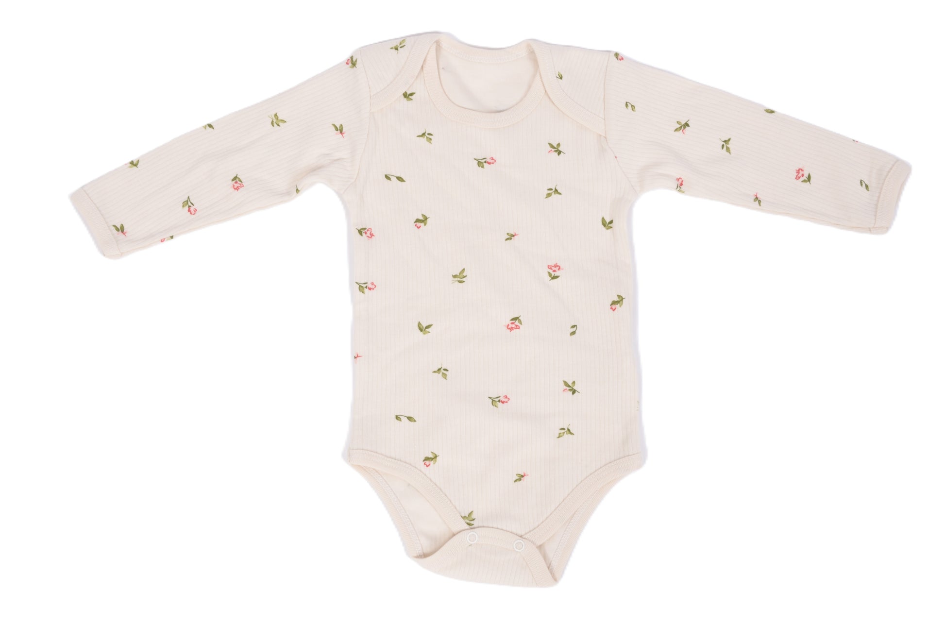Бебешко боди с дълъг ръкав в цвят екрю с флорален десен