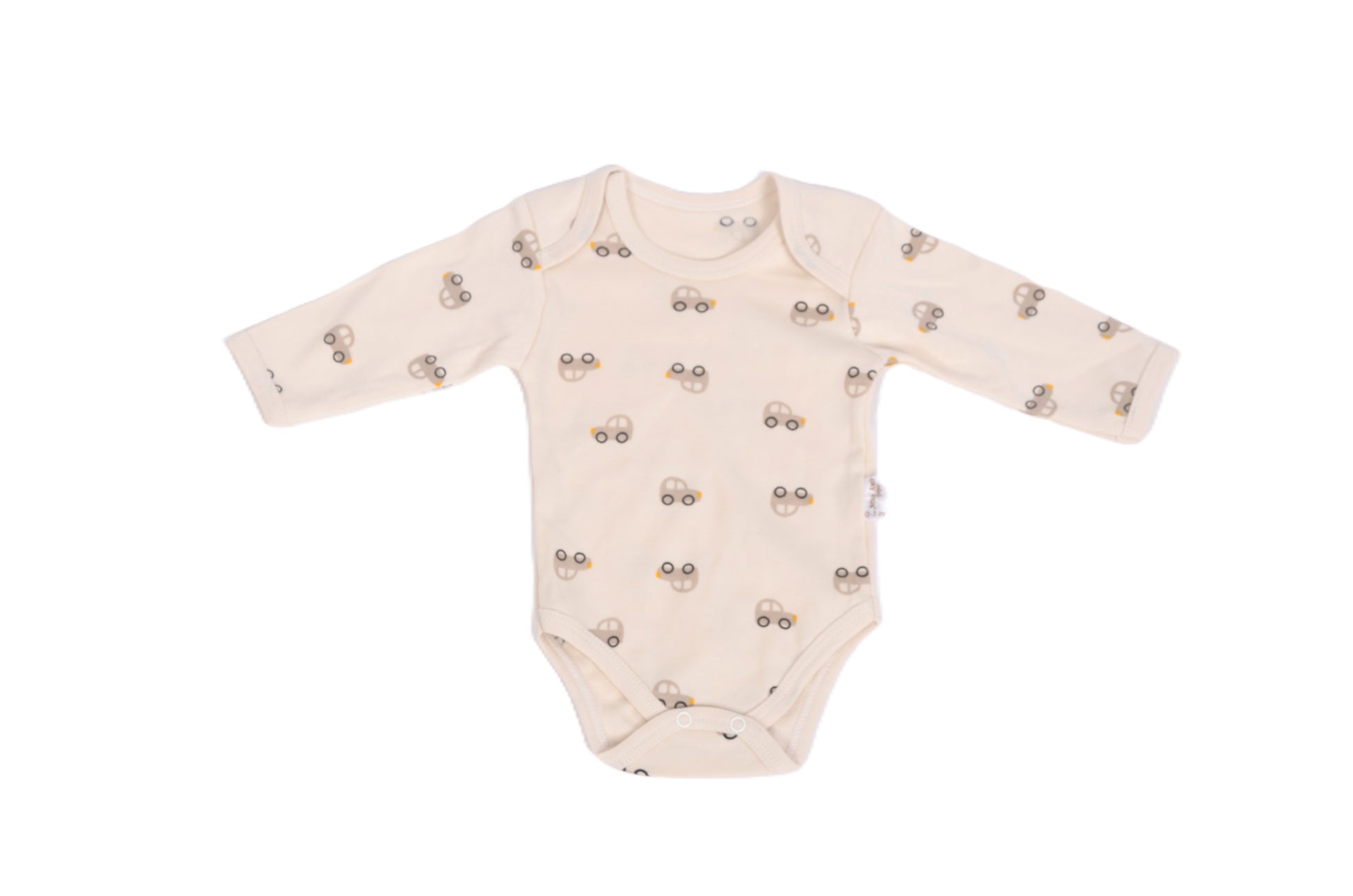 Бебешко боди с дълъг ръкав – „Beige Cars“