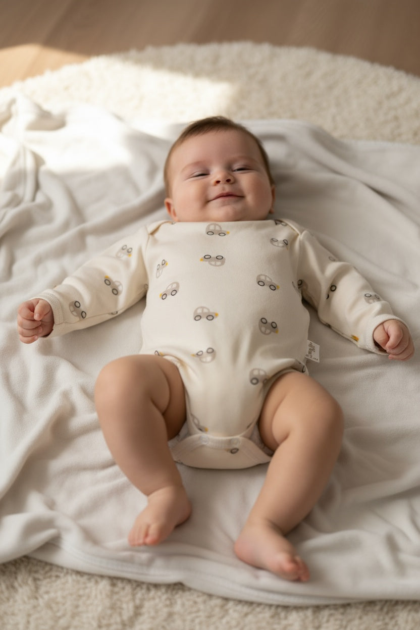 ✨ С бодито „Beige Cars“ от Zvezdichka, Вашето бебче ще изглежда стилно и ще се чувства комфортно.