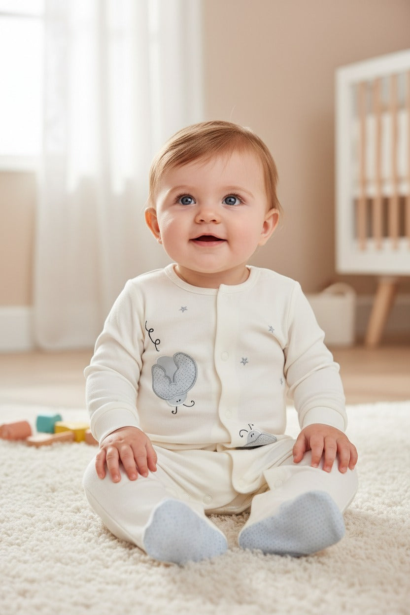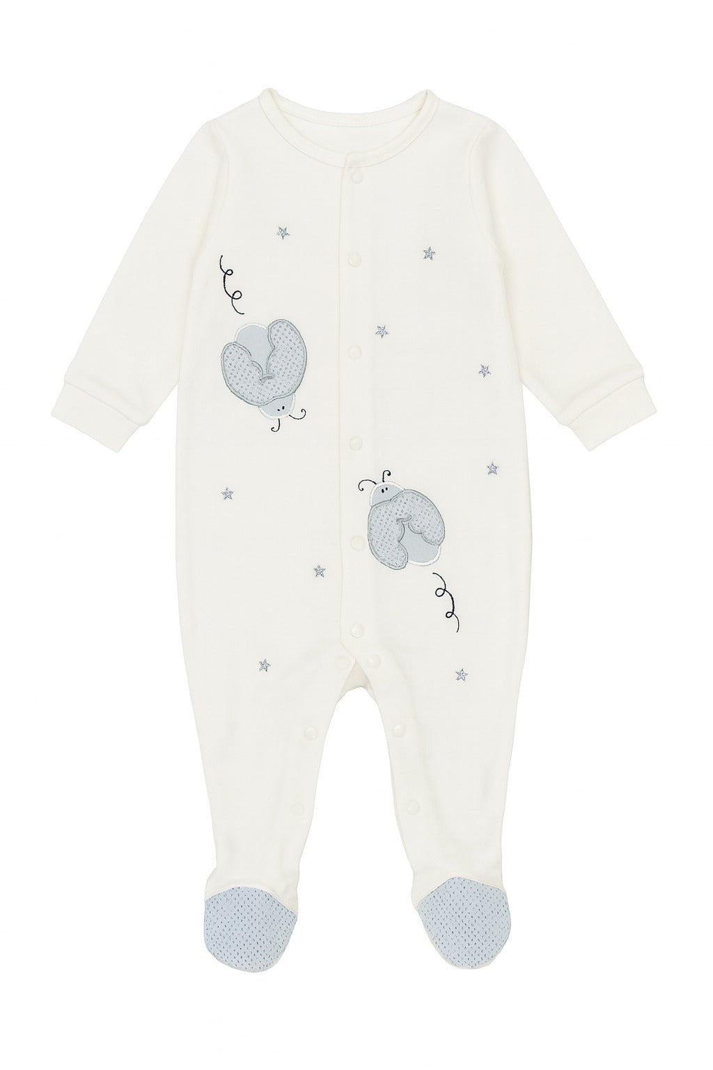 Създаден за пълноценен комфорт през целия ден и нощ, гащеризон „Little Ladybug“ съчетава изключителна мекота, нежен дизайн и практичност за най-малките. В елегантен млечнобял нюанс със сладки бродирани калинки и фини звездички, той е идеален както за сън, така и за ежедневни гушки и игри.