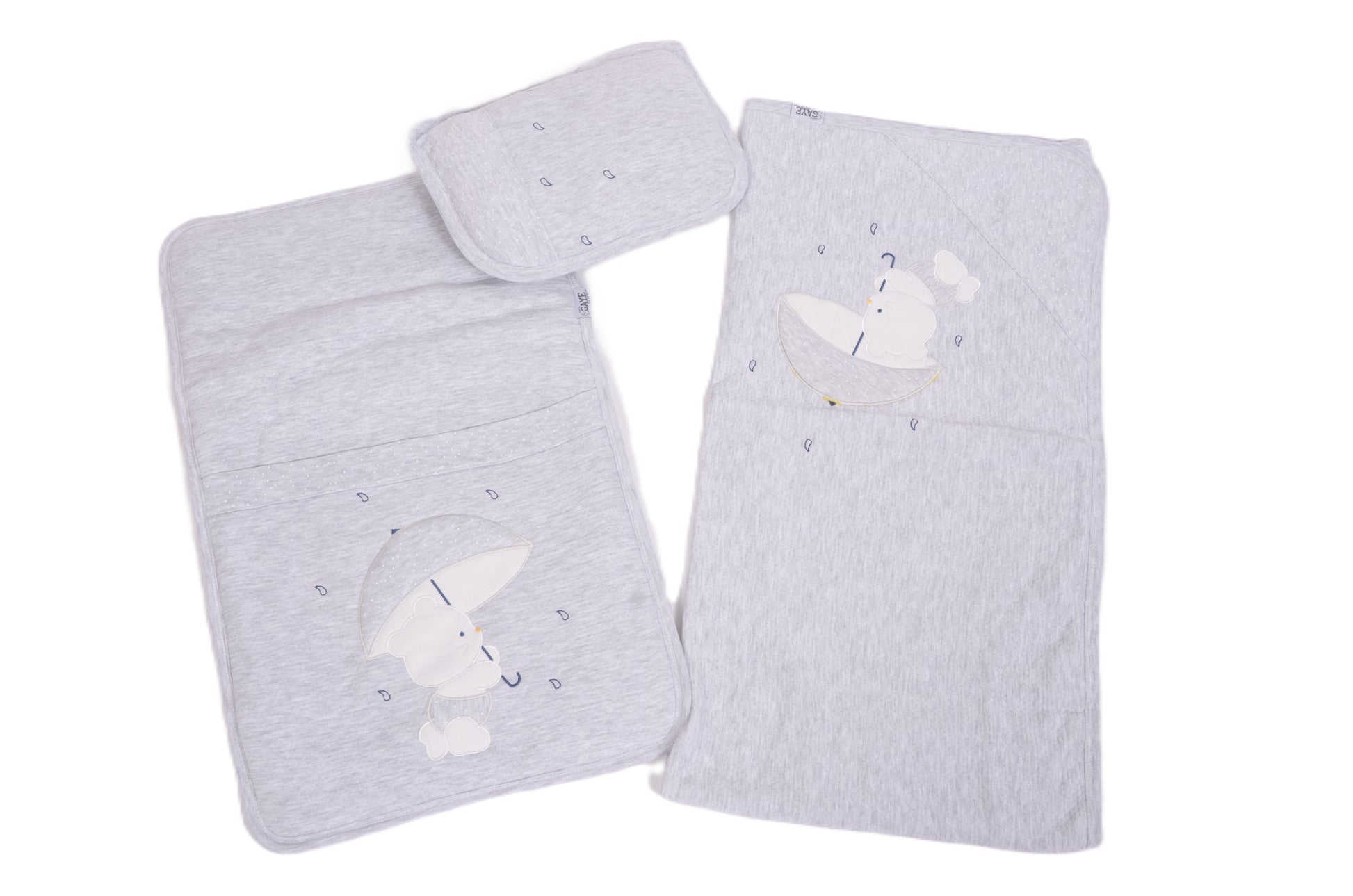 Комплект за повиване с меченце и чадър в сиво ☁️🐻