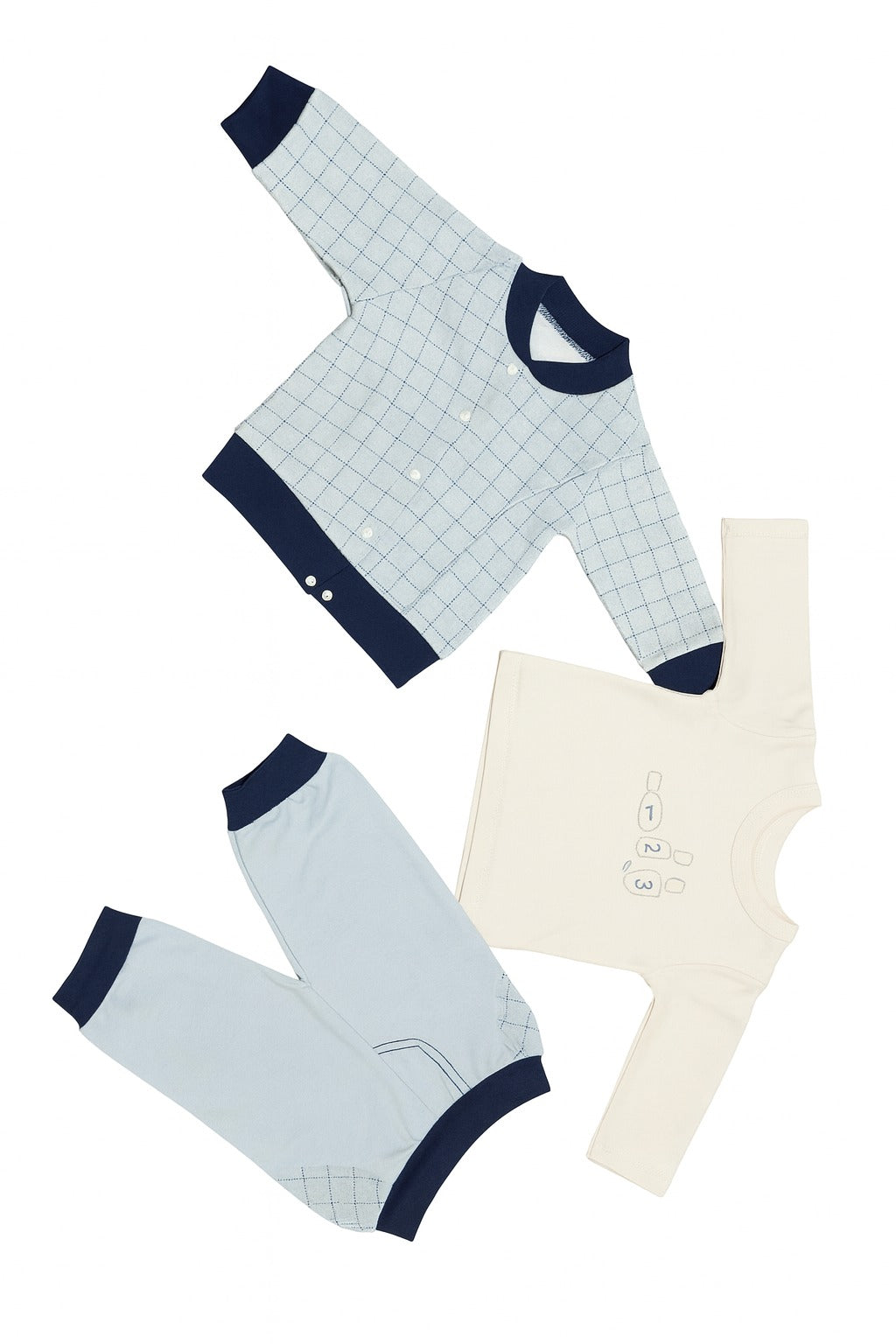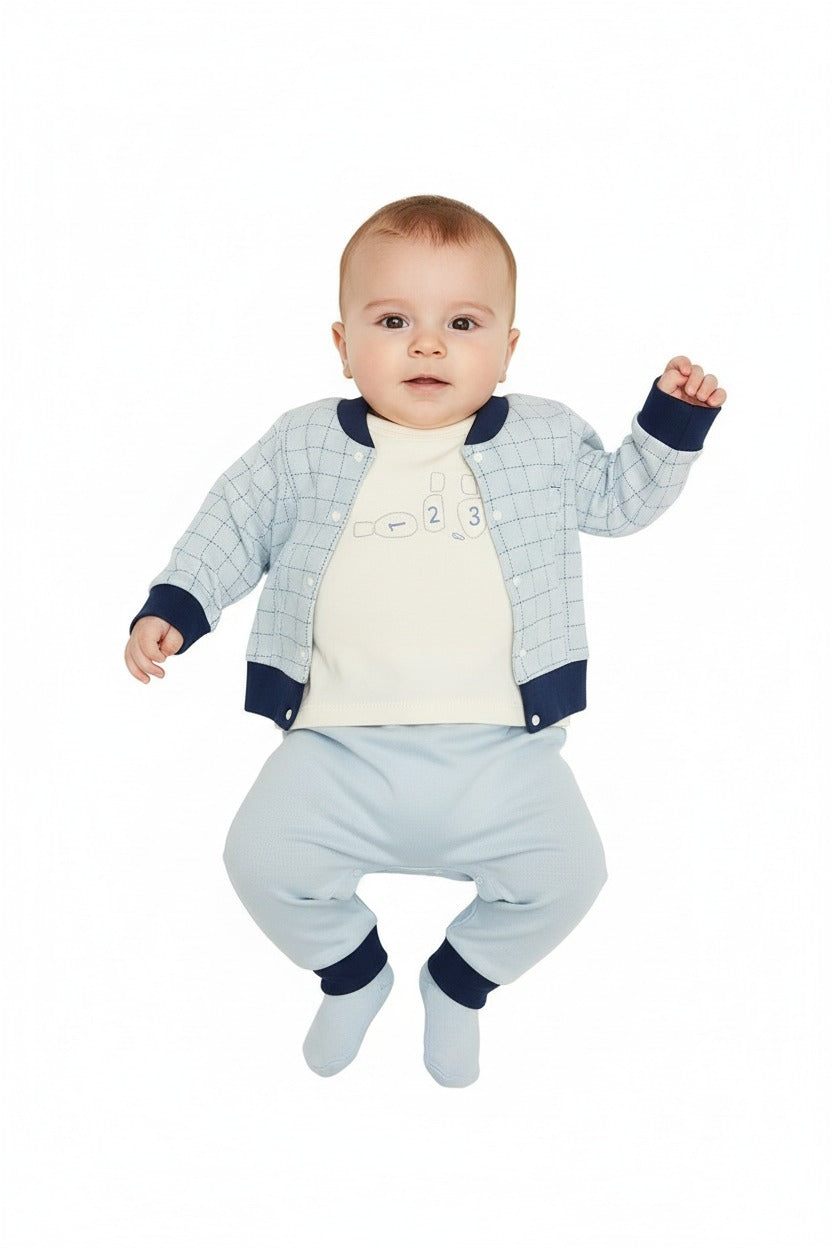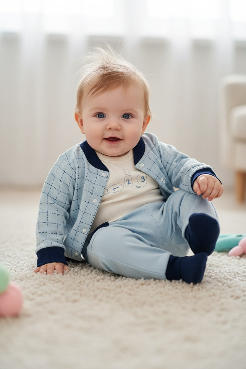 Комплект „Blue Gentle“ е перфектният избор за вашето малко съкровище – нежен, удобен и стилен до последния детайл. 💙✨