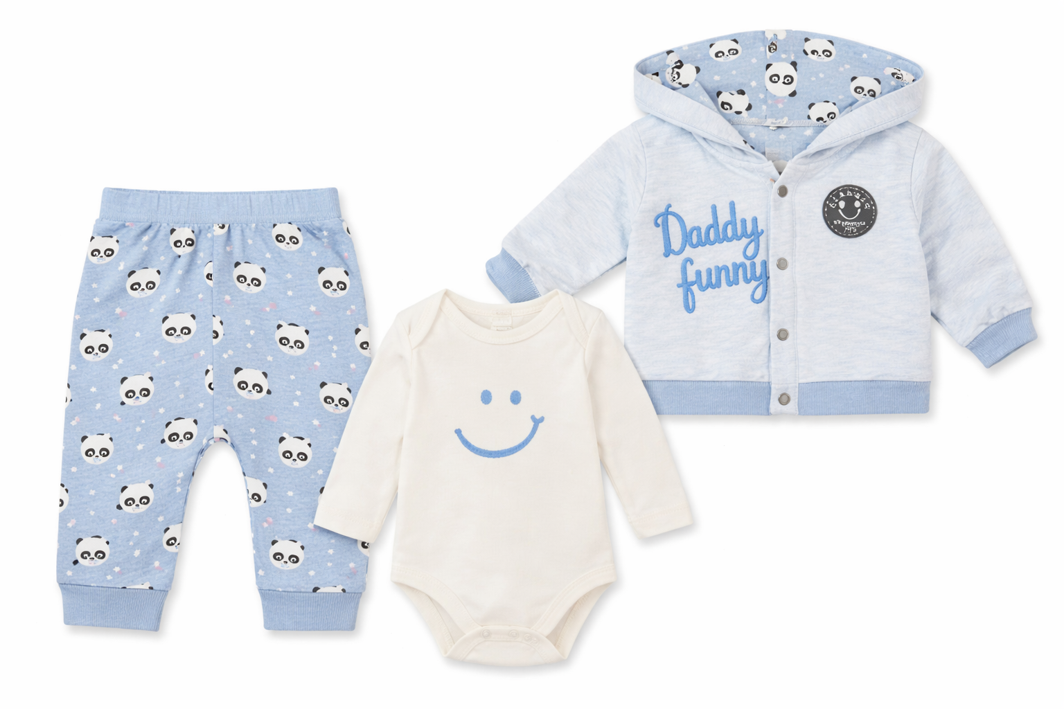 Бебешки комплект „Daddy Funny Panda“ – 3 части, синьо и бяло