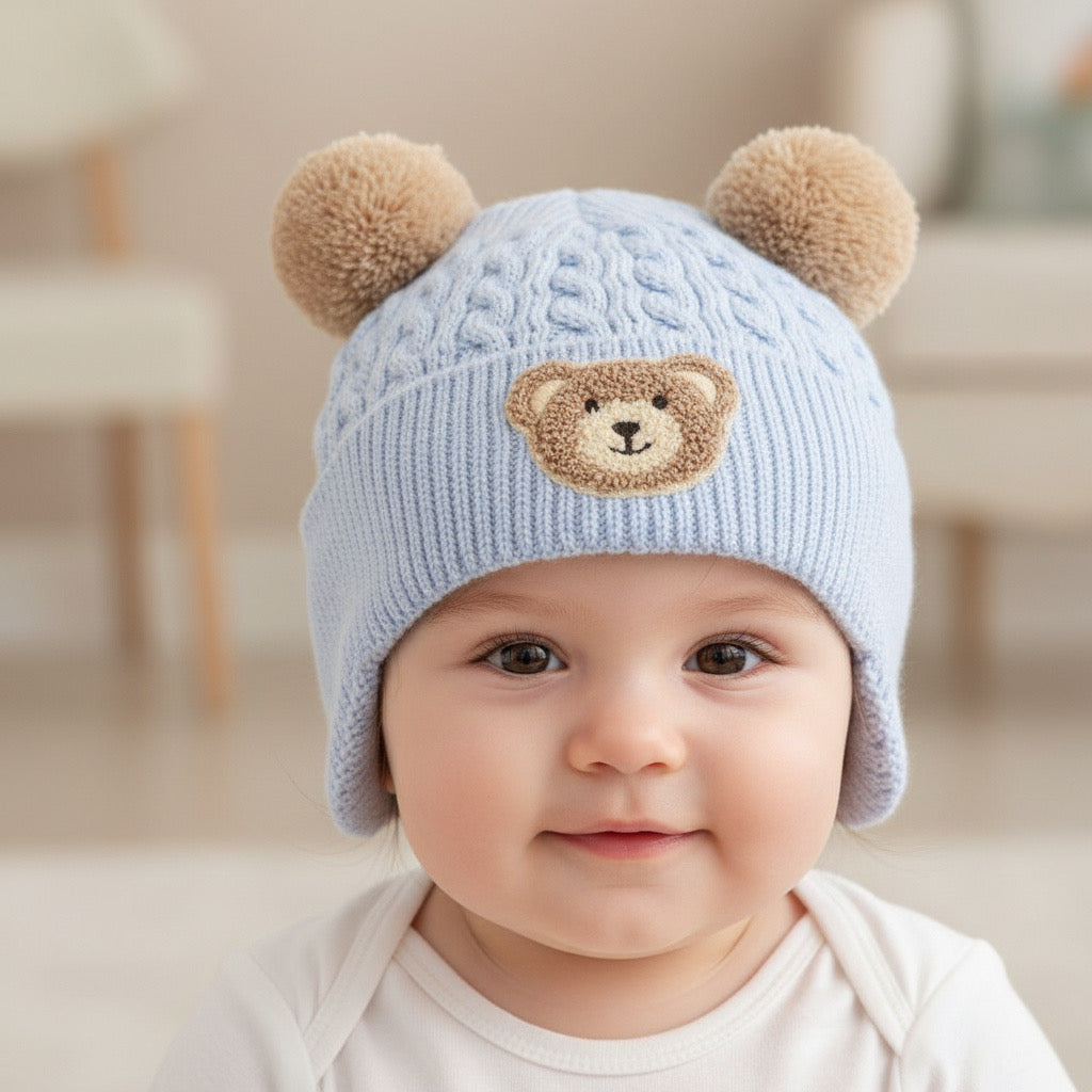Шапка „Blue Teddy“ съчетава практичност, топлина и неустоим дизайн – перфектният зимен аксесоар за малки сладурчета 💙❄️